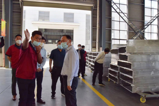隨后,葉書記一行實地參觀了生產車間,親臨復工復產第一線。公司負責人王先德對各類生產工藝流程,作了詳細介紹,并回答了市領導的關切和垂詢。